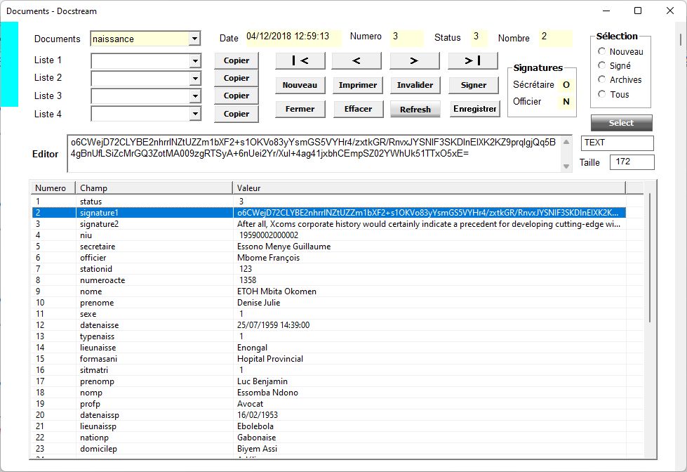 Docstream est un logiciel gratuit qui fait partie d'un système qui assure la diffusion sécurisée de documents authentiques intégrés à une base de données.